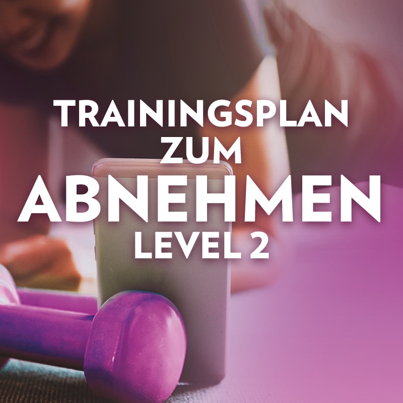 Wie bei unserem Trainingsplan zum Abnehmen für Einsteiger (Level 1), erhältst du auch diesmal einen vierwöchigen Workout-Plan mit je 3 Trainingseinheiten pro Woche (2 x Kraft und 1 x Ausdauer), die du zuhause oder im Gym durchführen kannst. Das Krafttraining beinhaltet neue und erschwerte Übungen, die den Impuls für neue Trainingsreize setzen und deine Trainingsmotivation hochalten sollen. Das Ausdauertraining kombinieren wir in Level 2 mit einem Einsteiger-Intervalltraining, um deinen Fettstoffwechsel zusätzlich anzukurbeln. Damit du trotz der erhöhten Belastung weiterhin leistungsfähig bleibst, empfehlen wir dir deine Trainingstage so zu legen, dass mindestens 48 Stunden Regenerationszeit dazwischen liegen.